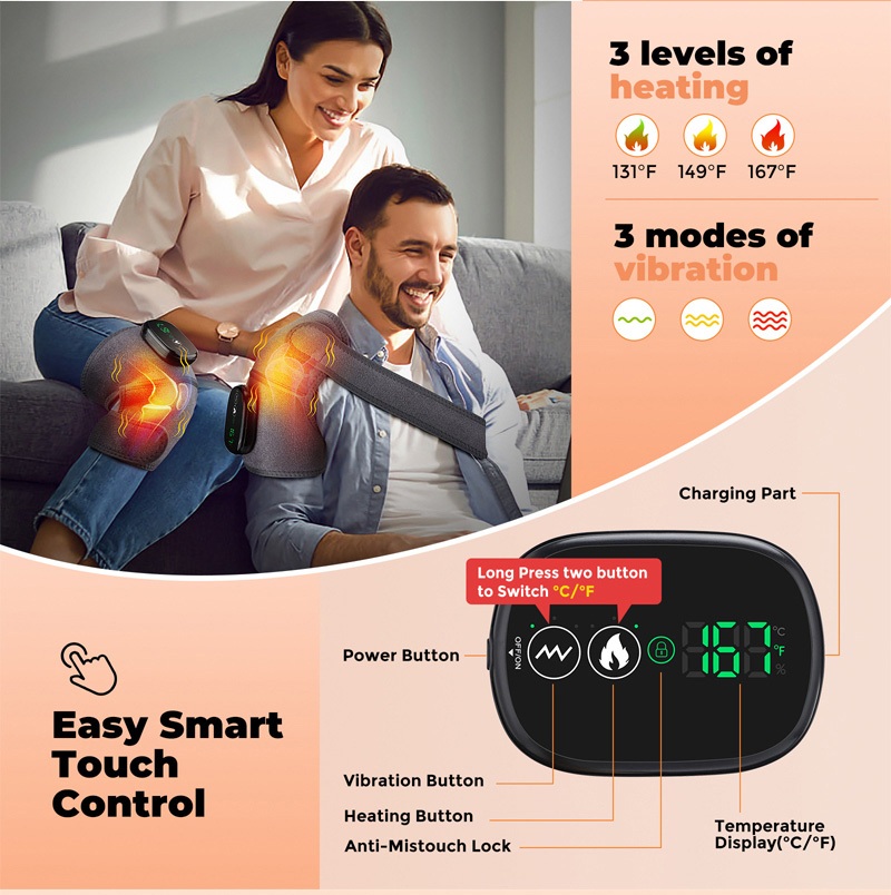 This knee massager is made of high-quality diving fabric with high elasticity and softness. Lightweight knee heating pads are easy to carry around, and you can use them at home or in the office.