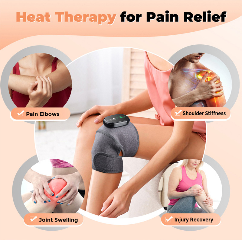 3 In 1 heated massager wrap pad is not only used for knees, but also for elbow and shoulder. Knee Heating Pad is equipped with large & small extension straps, which can not only help to secure the knee massager in place, but also allows you to use it on your arms, thighs, knees, calves, ankles.